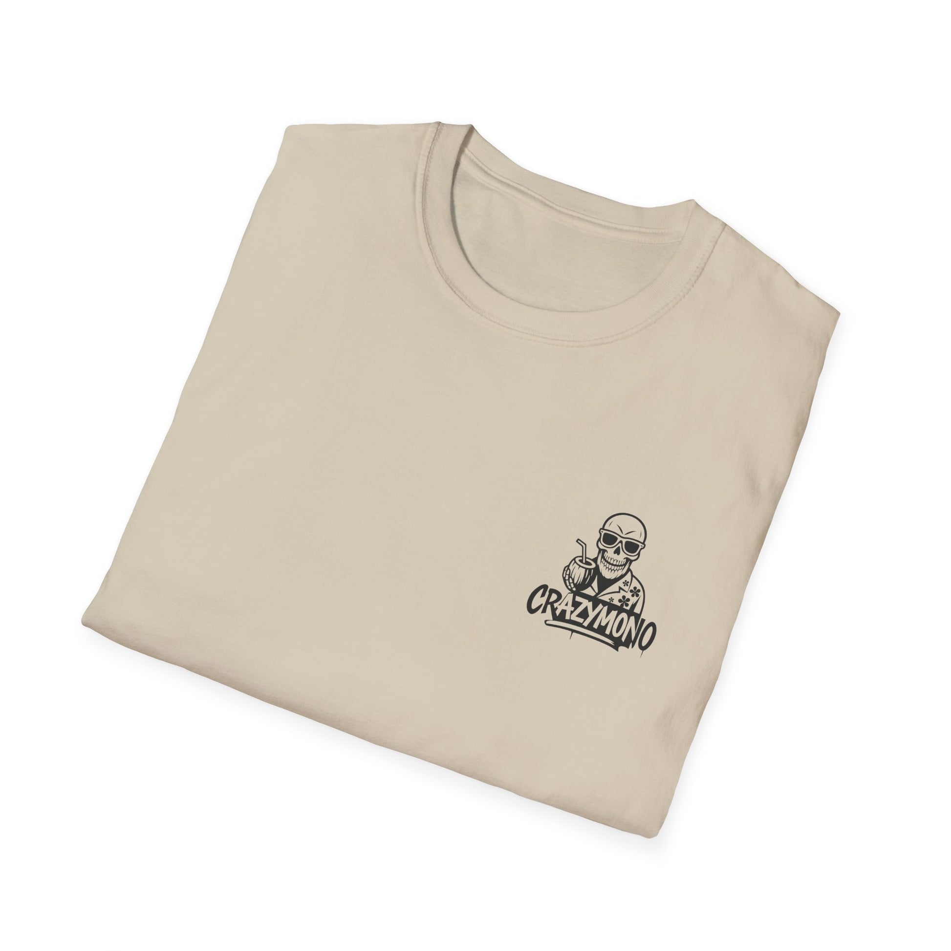Lightweight, soft, and built to be lived in — this classic crew tee carries a bold, sun-soaked vibe. The front features a small chest emblem while the back shows a larger, hand-drawn skull sipping from a coconut and wearing shades, with the playful “CRAZYM0N0” wordmark beneath. It feels like an island afternoon: easy, a little mischievous, and endlessly wearable. The breathable ring-spun cotton keeps the silhouette clean and comfortable, whether layered under a jacket or worn alone on warm evenings. For beach-goers, street-style makers, and anyone who likes a wink of attitude in their wardrobe, this tee slips into days that demand casual confidence and quiet fun.